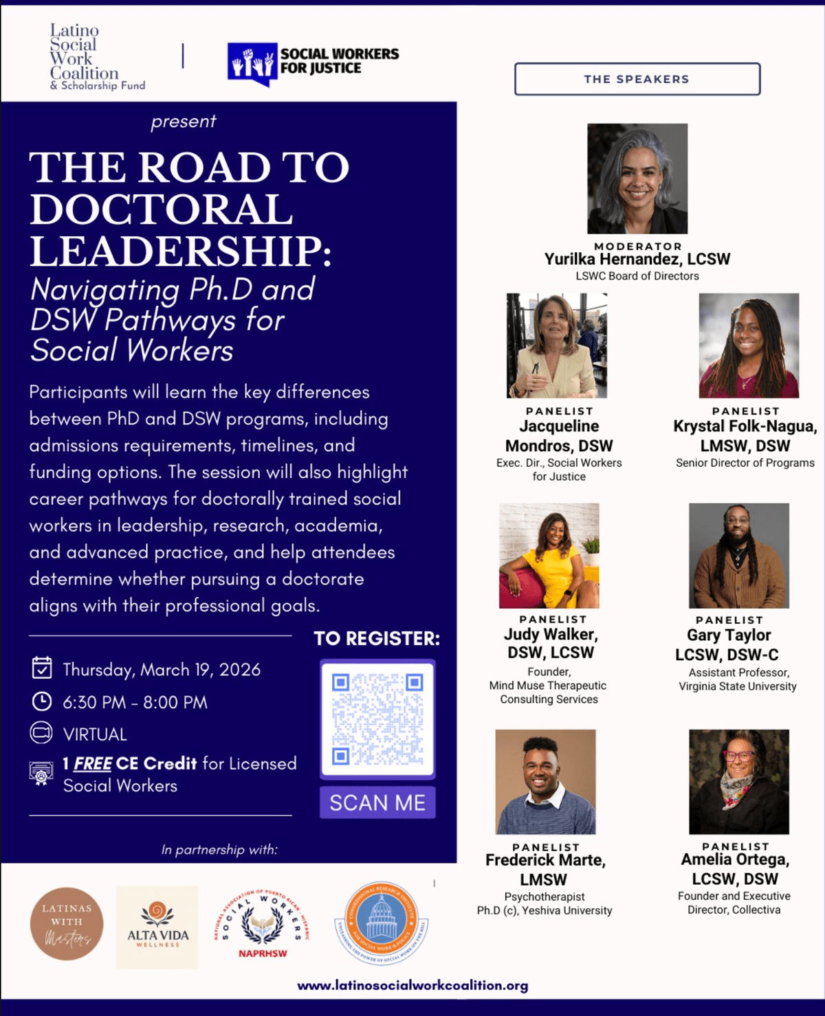 Participants will hear from current doctoral students and graduates about their journeys and gain tools to determine whether pursuing a doctorate is the right next step. Ideal for early-, mid-, or late-career social workers considering doctoral education.